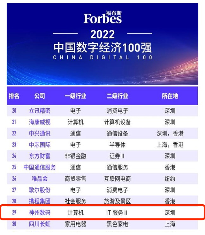8月20日,“福布斯2022中国数字经济100强榜单”在江西上饶发布。作为数字中国的探索者、实践者和赋能者,意昂4数码凭借杰出的表现,位列百强榜单第29位,计算机类第3位,再度获得权威机构认可。